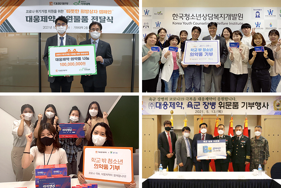 대웅제약은 지역사회를 위해 국내 의료기관 및 NGO 등의 단체를 통해서